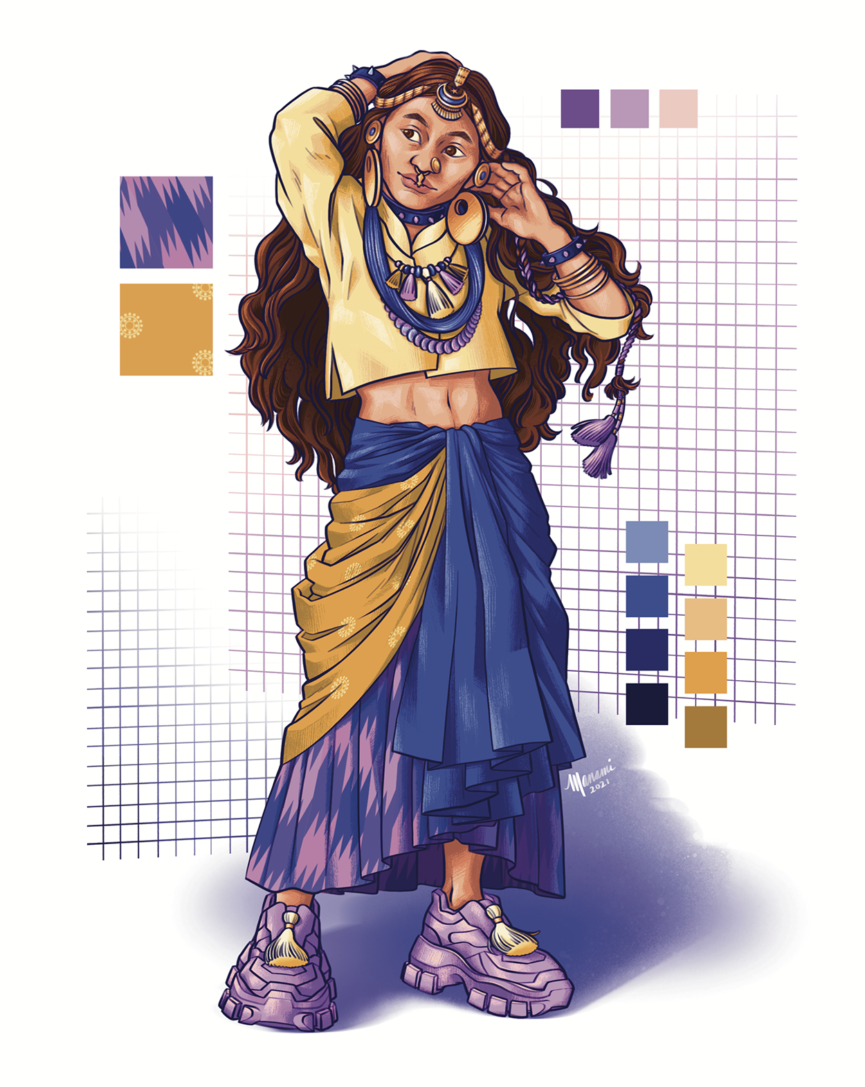 API Lookbook Entries — For Asian American History Month, I designed street fashion looks based on various Asian cultures. The inspirations for each look are captioned below each design.